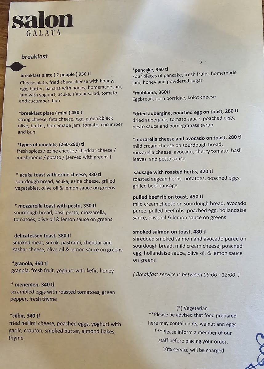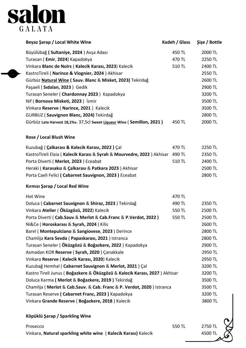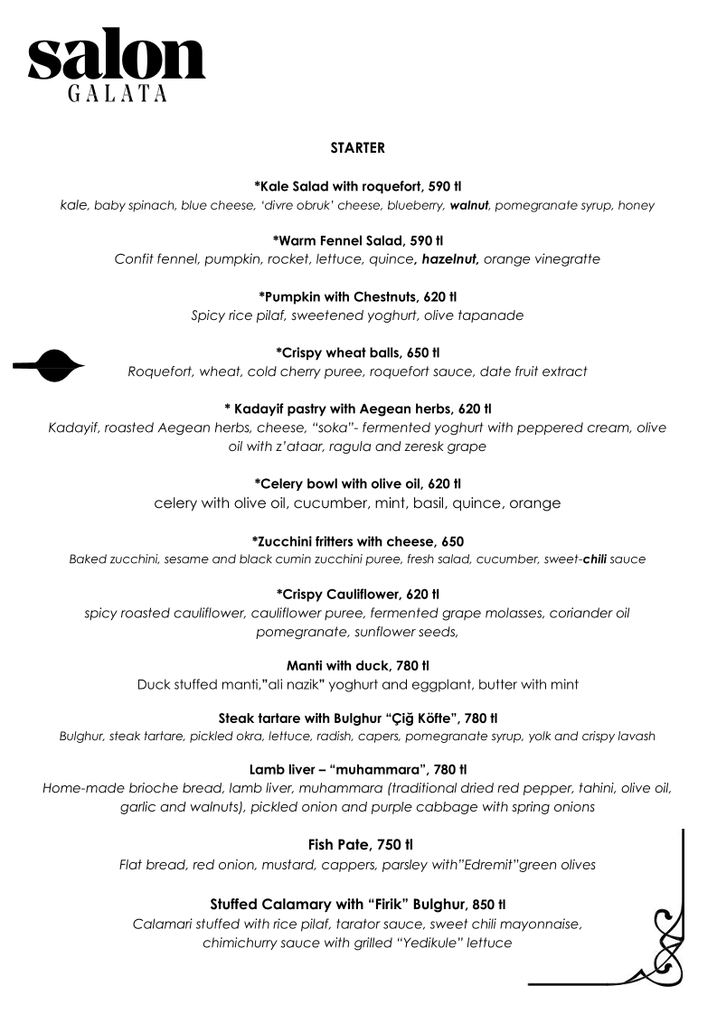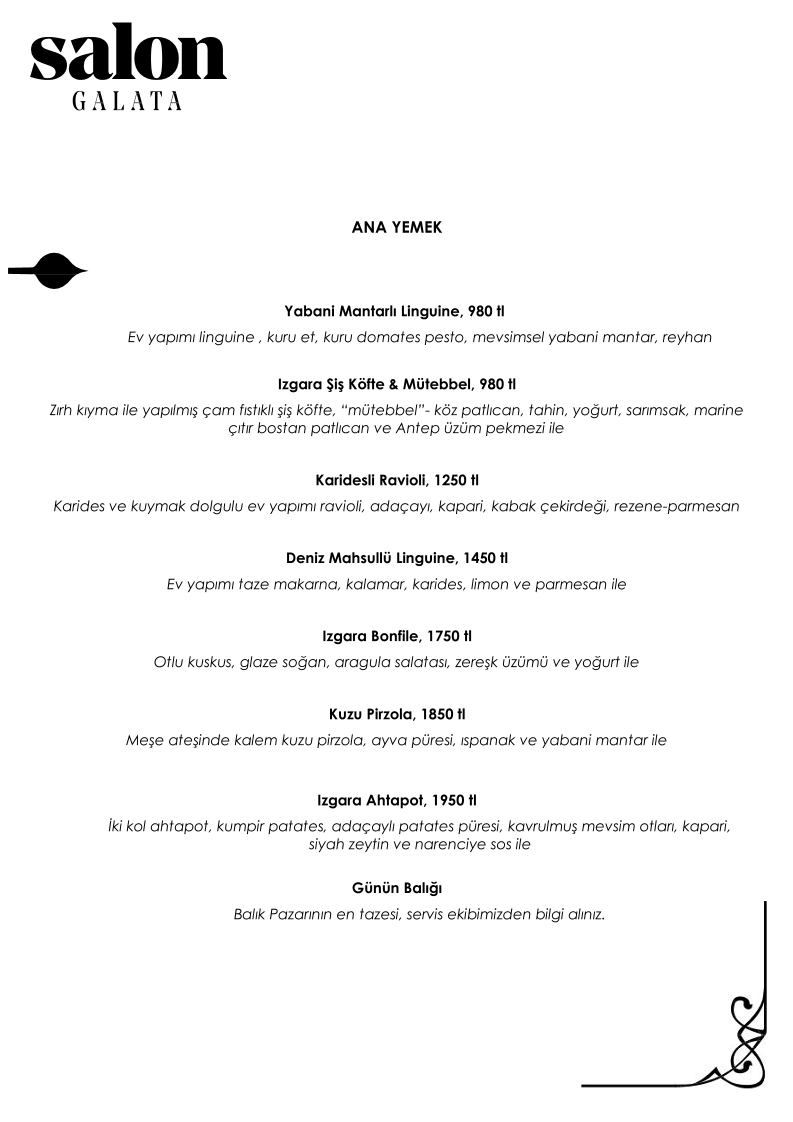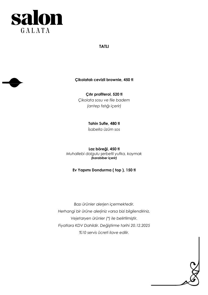 Salon GALATA Menu