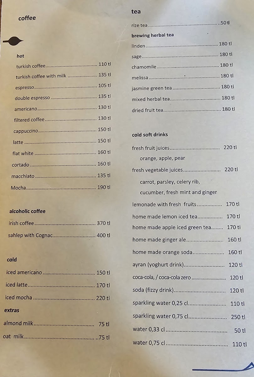 The drinks menu is designed for moments of calm, with offerings like classic lattes, expertly mixed Negronis, and an interesting variety of local rosé and red wines complementing the food. Whether stopping by for a morning coffee, sharing a casual lunch, or settling in for an evening of wine and small plates, the menu’s balance between fresh, daily ingredients and familiar flavors supports a comfortable and thoughtful dining rhythm in the heart of Beyoğlu.