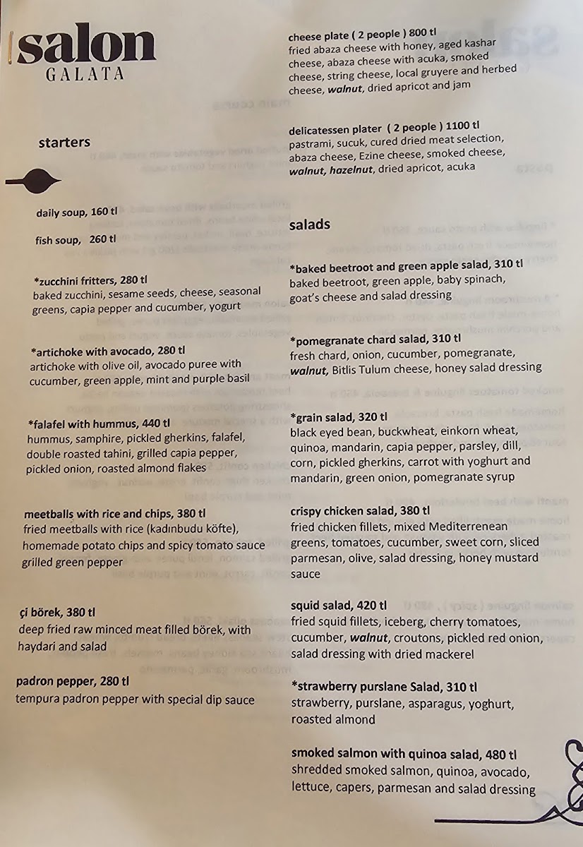 The menu at Salon GALATA offers a thoughtful blend of traditional Turkish flavors and contemporary dining, presented with a relaxed and inviting approach. Here, you can find a range of dishes that suit different times of the day — from a leisurely Turkish breakfast to heartier seafood or grilled meat options later on.